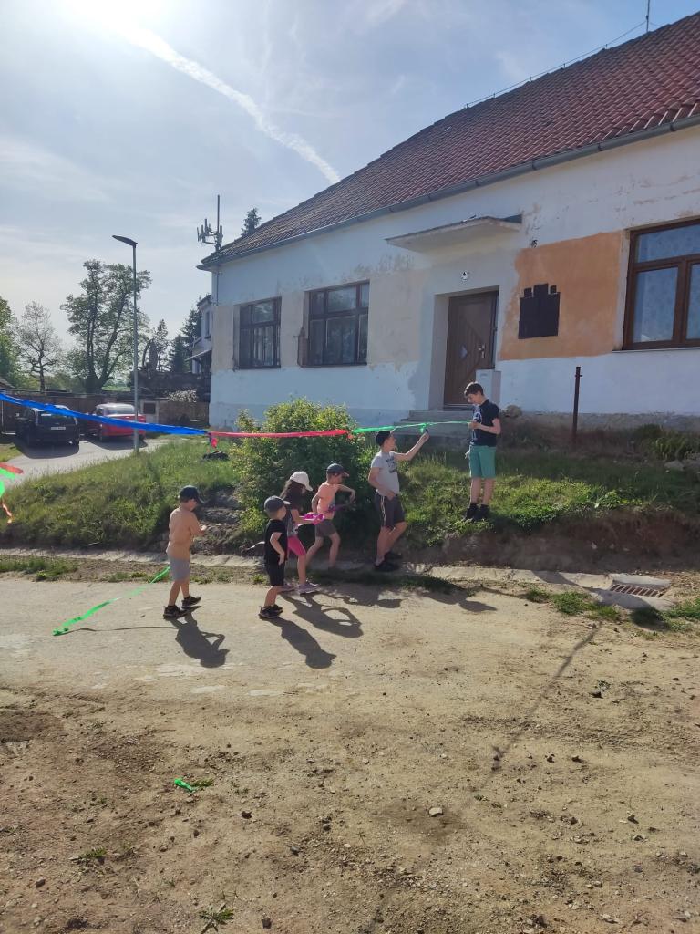 Po úspěšném zasazení májky jsme si všichni pochutnali na výborném grilovaném mase, které připravili Radka Moulíková s Kájou Rážů a každý si rád dopřál osvěžující pivo. Buřty jsme si opekli na novém ohništi, které jsme společnými silami vybudovali v loňském roce. Ti nejmenší si užili skákací hrad, který byl pro ně celou dobu k dispozici.