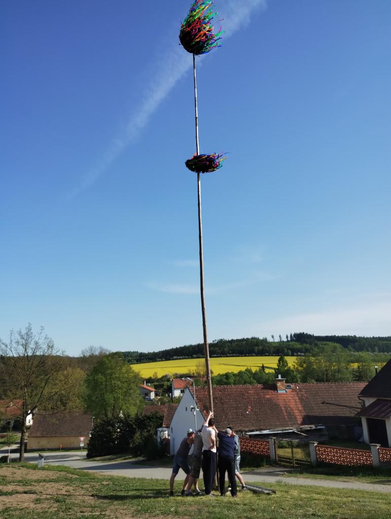 Bohužel tradice hlídání májky nekončí jen radostnými událostmi. V ranních hodinách byla májka po cca 30 letech podříznuta a její věnec byl ukraden. Trofej si odvezli do obce Kožlí.